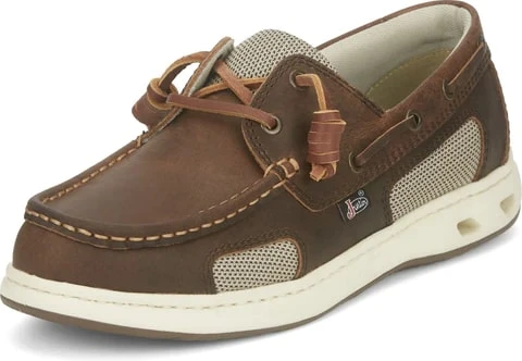 Justin Slip-On Mens Brown Angler Leather Boat Shoes.