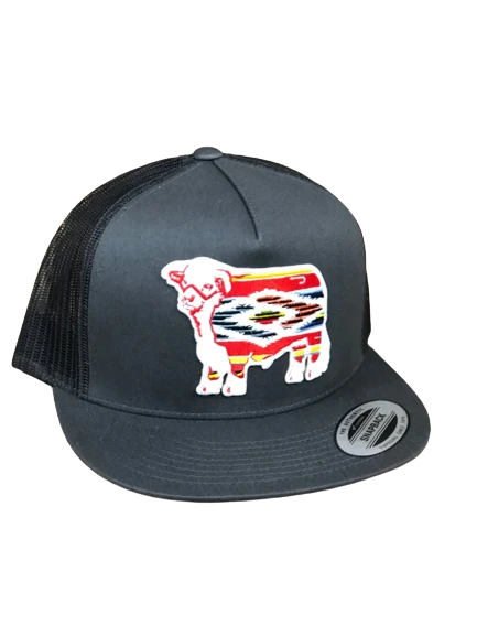 Gray front and Grey mesh back. 4 inches. Serape Bull patch. One size fits most.