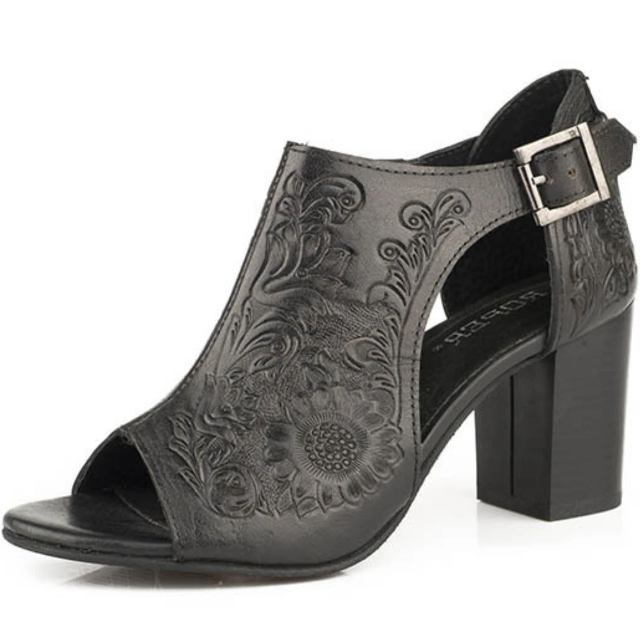WOMENS BLACK OPEN TOE HEEL.