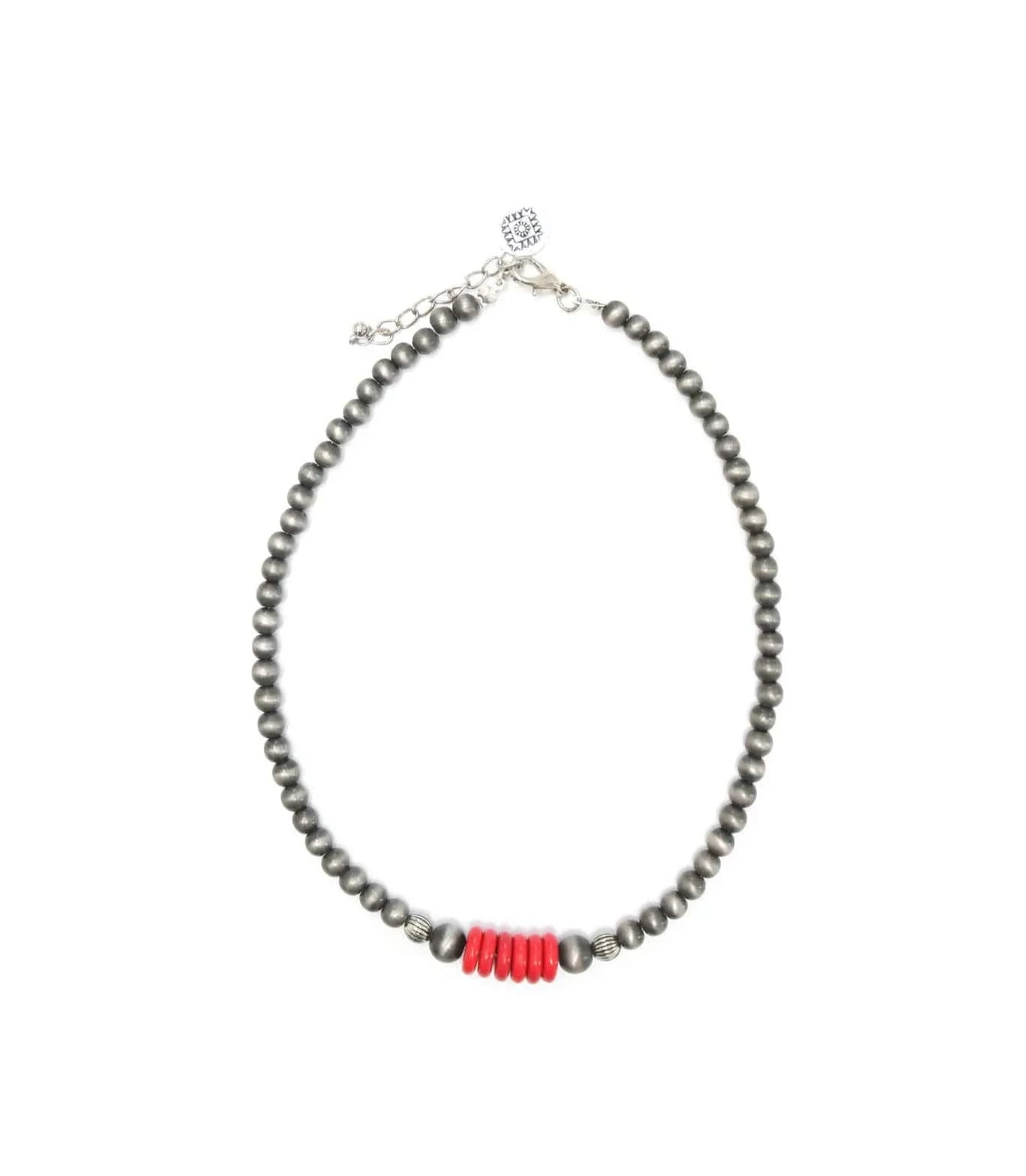 14″ Faux Navajo Pearl Choker Necklace with Red Accent