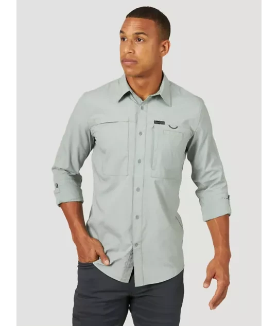 ATG by Wrangler™ is a collection of everyday outdoor styles that are versatile and reliable where it matters most. From hiking to fishing, this regular fit utility shirt will keep you cool and protected with its breathable stretch fabric construction. We included all the features needed for an active day, such as moisture-wicking properties, UPF 30 protection, and back mesh ventilation. Keep your belongings safe in the secure zip napoleon pocket or the two front drop-in pockets with Velcro closure. Additional features include a utility loop at the pocket for lures or sunglasses and a glasses cleaner at the bottom hem.